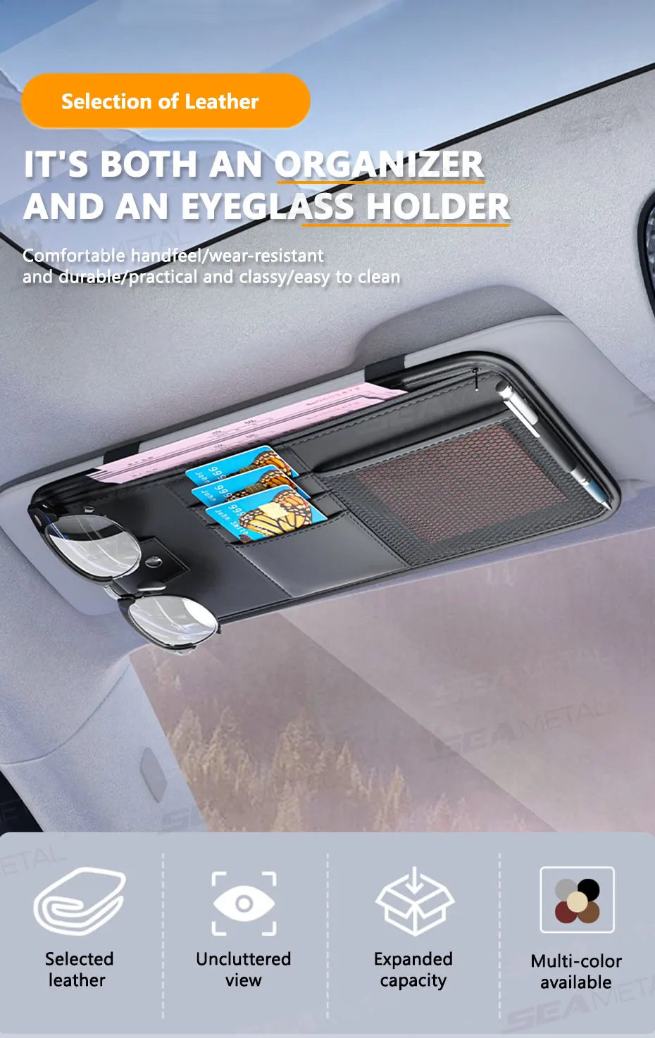 With the Carvisto OrganizePro visor organizer, your automobile remains clean and systematically arranged. The stylish PU leather construction seamlessly blends into your car's aesthetic while providing extra storage space that doesn't obstruct your line of sight.