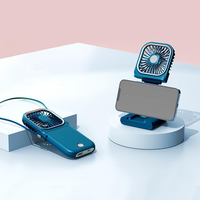 Flexible Portable Fan: Carry it conveniently using the neck strap; the foldable handle can also transform it into a desk fan; it’s easy to grip or pack in your backpack or purse when out and about, making it perfect for summer adventures or outdoor activities. Moreover, the fan's base functions as a phone holder, offering practical space-saving support for your workspace.