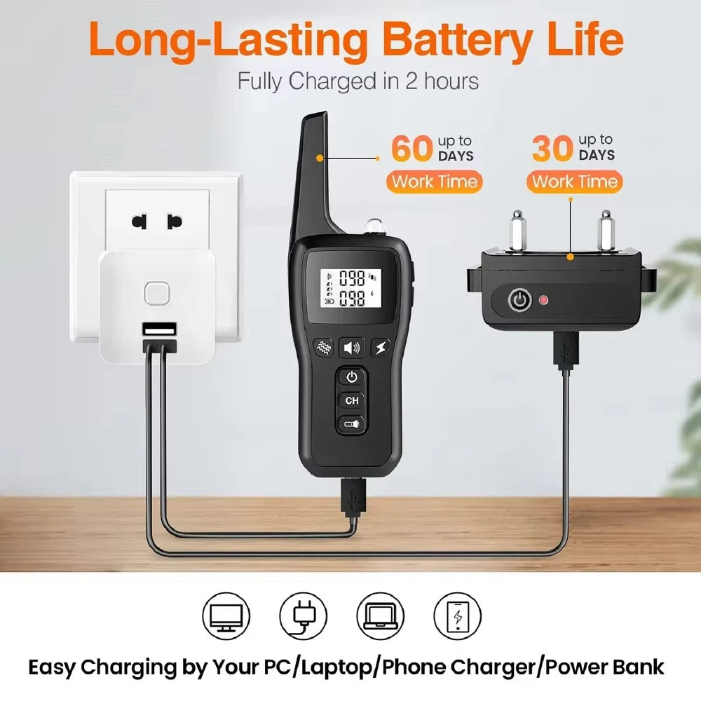 This rechargeable training collar features a remote range of 1000 meters, allowing you freedom whether you are inside or outside. It includes three training modes — beep, vibration, and gentle static stimulation — providing customized correction for various behaviors. The collar is rated IP67 waterproof, ensuring dependable performance in wet environments, while the reflective nylon strap improves visibility during nighttime walks. With 100 levels of adjustable intensity, this system offers precise training assistance. The lithium polymer battery charges in approximately two hours and supports up to 60 days of usage, making it both efficient and budget-friendly.