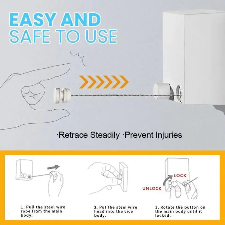 With the pull-out clothesline, you can utilize your space effectively and dry your laundry with ease. This compact, extendable line comes with a sturdy locking mechanism that can handle heavy loads, making it ideal for small apartments or bathrooms.