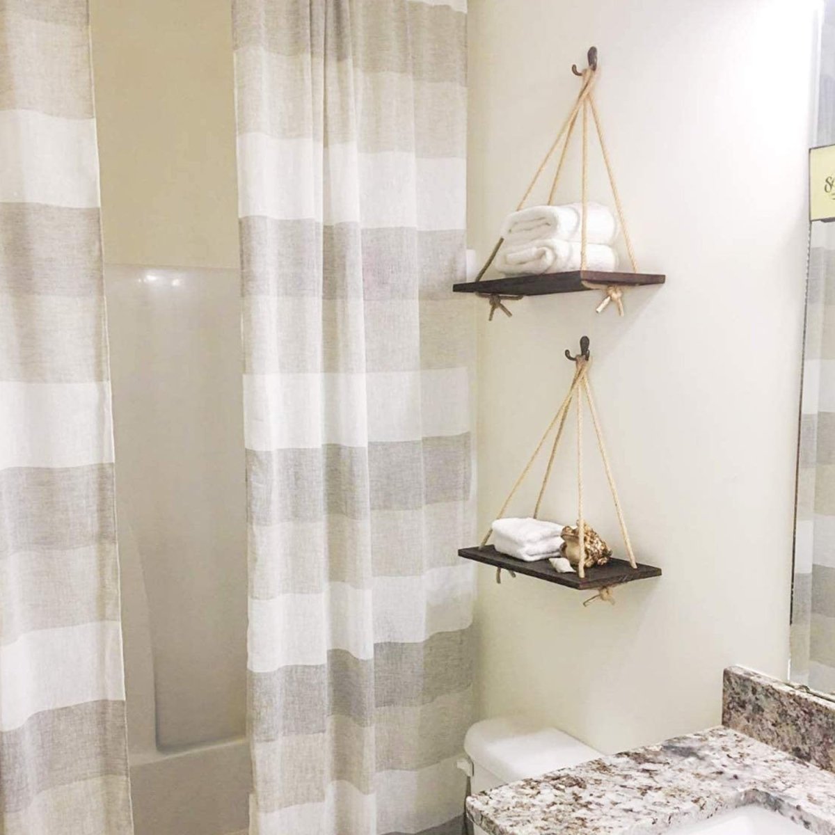 This Scandinavian-style wooden shelf suspended by rope adds a touch of nature and minimalism to any space. It's an excellent choice for showcasing decorative objects, plants, or small accessories, and it can be easily installed with its durable rope. This floating shelf complements modern, Boho, or rustic design themes seamlessly.