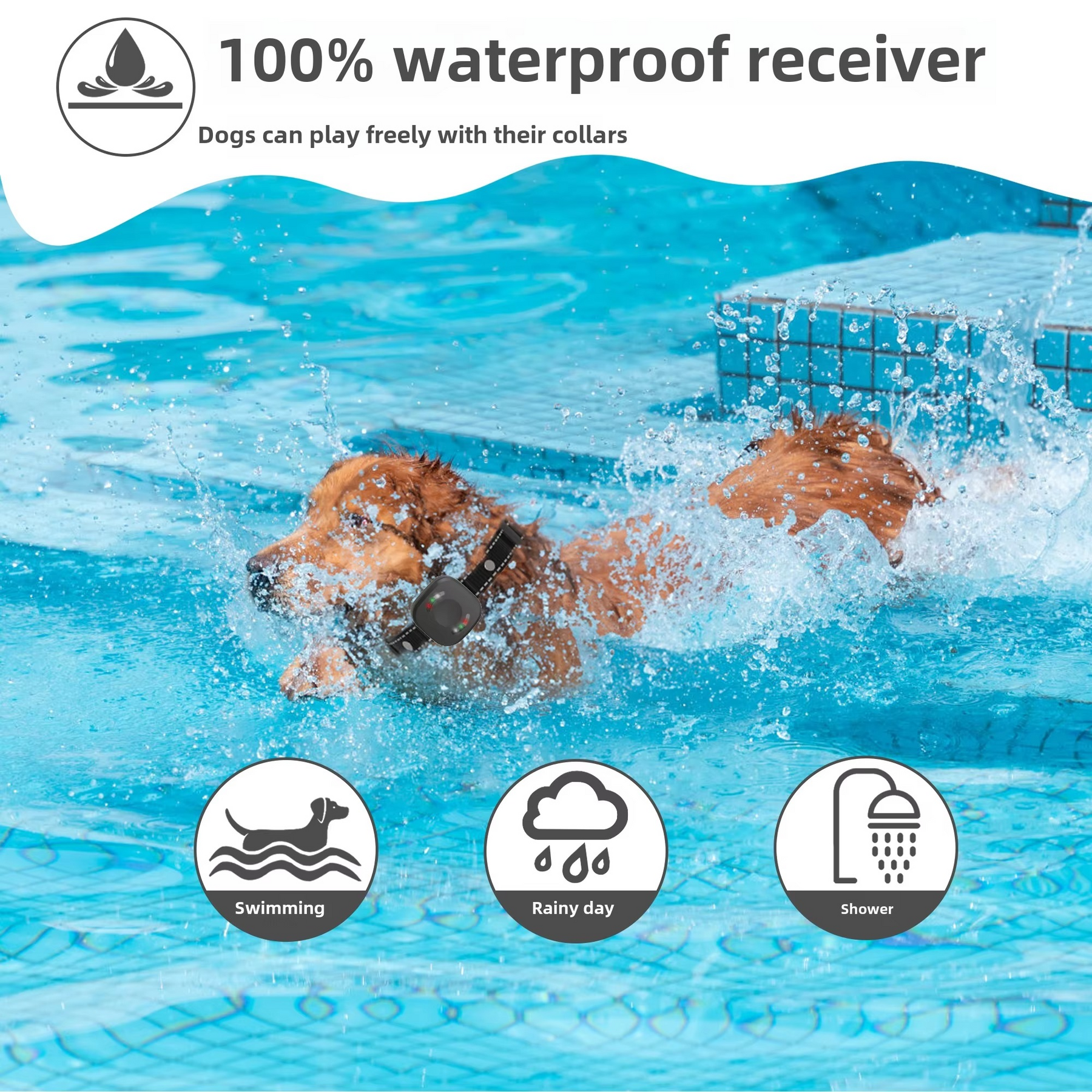 Equipped with IP68 waterproof technology, our collar ensures continuous operation in all weather conditions. The rechargeable battery offers long-lasting performance, while the multi-modal system (beep, shock, vibration) adapts to your training preferences.